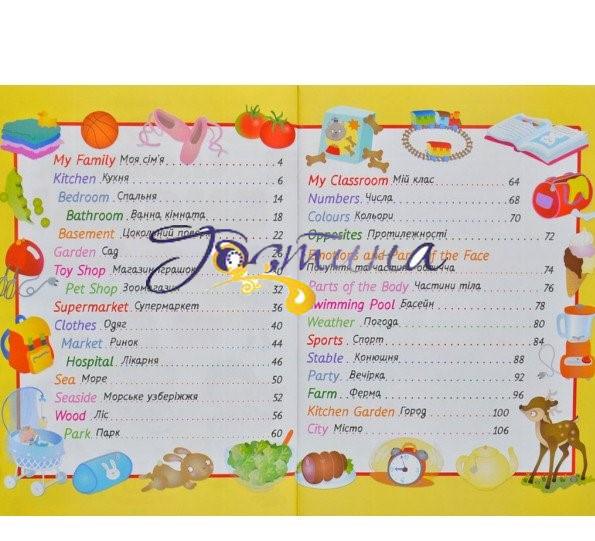 Ілюстрований словник English — якраз ті самі перші кроки у вивченні іноземної мови, коли найголовніше — це викликати радісні емоції й бажання працювати з навчальною книжкою.