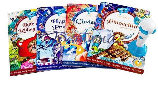 Інтерактивні книги для раннього розвитку дитини. Набір складається з 4 всесвітньо відомих казок. Тексти казок надруковані і озвучені на 3 мовах – англійська, українська, російська.