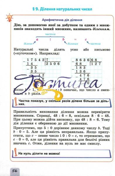 Теоретичний матеріал містить зразки розв’язування вправ, малюнки і схеми з метою унаочнення та адаптування до вікових та індивідуальних особливостей п’ятикласників, їхніх можливостей і потреб. Диференціація задач і прав на 4 рівні складності допоможуть учням досягти очікуваних результатів навчання, а вчителям оптимізувати свою роботу.