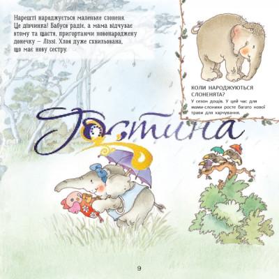 Дізнайтеся багато цікавого про життя слонів! У спекотній африканській саванні у стаді слонів народжується слоненя Ліззі. Вона життєрадісна та весела й цікавиться усім навколо. Одного дня Ліззі грається з метеликами й не помічає, як відходить далеко від свого стада. Хто допоможе Ліззі знайти шлях до мами? У саванні дуже небезпечно гуляти самій...