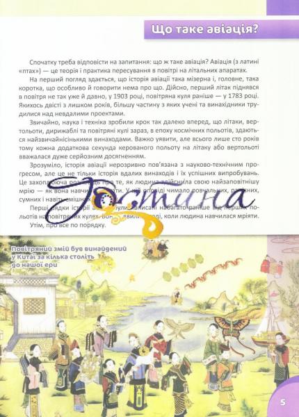 Перед вами відкриються найцікавіші й хвилюючі сторінки історії повітроплавання: від повітряної кулі та дирижабля до надзвукових авіалайнерів і вертольотів, які піднімають багатотонні вантажі, від махольота Леонардо да Вінчі до сучасного мотодельтаплана. Ця книга також розповість про хитромудрих винахідників і відважних випробувачів, котрі ризикували життям заради можливості відчути щастя польоту. Видання призначене для дітей молодшого та середнього шкільного віку, а також для їхніх батьків, бабусь і дідусів.