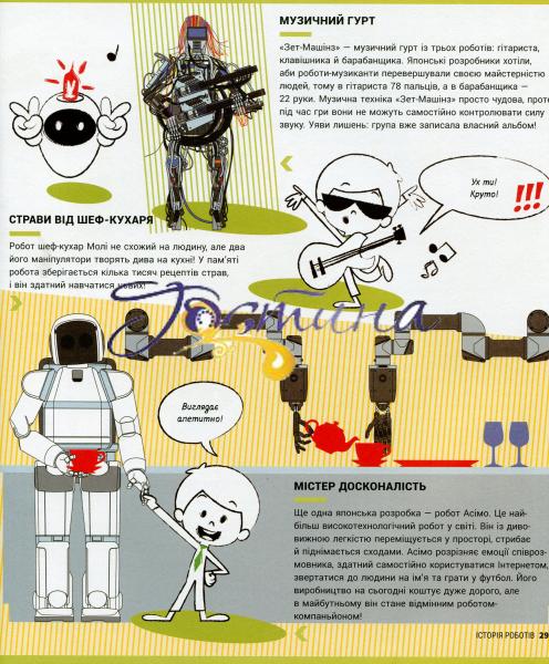 Знайомимося з історією роботів від найдавніших механічних пристроїв до сучасних складних машин. Енциклопедія розповість про історію виникнення, розвитку роботів, а ще про роботів майбутнього.