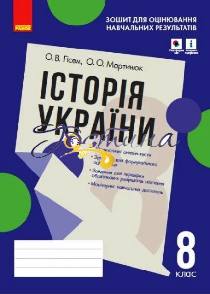 Посібник містить завдання для формувального, тематичного та річного контролю результатів навчання учнів 8 класу закладів загальної середньої освіти з курсу історі Україниї. Кожна робота представлена у двох варіантіах (річний контроль - у трьох). Видання також надає можливість онлайн-тестування. Призначено для учнів 8 класів закладів загальної середньої освіти та вчителів історії.