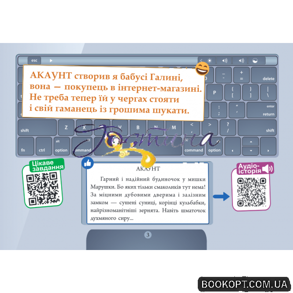 Кожне поняття супроводжує веселий вірш та дотепний яскравий малюнок. За допомогою QR-кодів можна прослухати цікаву історію про слово (в акторському читанні) та виконати ігрові завдання, підготовлені гуртківцями "STEM-Unior".
