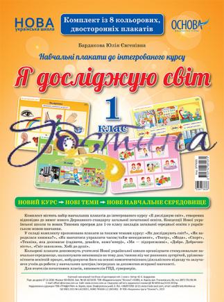 Комплект містить набір навчальних плакатів до інтегрованого курсу «Я досліджую світ», створених відповідно до вимог нового Державного стандарту загальної початкової освіти, Концепції Нової української школи та нових Типових програм для 1 класу закладів загальної середньої освіти з українською мовою навчання.До комплекту увійшли плакати за такими темами курсу: «Як досліджують світ?», «Як народилася книжка?», «Як навчитися управляти часом/тайм-менеджмент», «Театр», «Мода», «Спорт», «Техніка, яка допомагає (гаджети, девайси, комп’ютер)», «Ми – підприємливі», «Добро. Доброчинність», «Світ захоплень. Хобі до душі».Кольорові плакати допоможуть учителеві Нової української школи організувати стимулююче навчальне середовище, налаштувати вихованців на тему дня/тижня під час ранкових зустрічей, урізноманітнити освітній процес, будуючи його на основі компетентнісного/діяльнісного підходу та залучаючи учнів до роботи у навчальних центрах/осередках яскравою наочністю.Для вчителів початкових класів, вихователів ГПД, гувернерів.