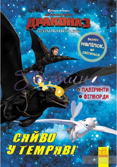 Приєднуйся разом з Гикавкою, Беззубиком та вікінгами Берка до захопливих ігор, завдань та розмальовок. А ще безліч наліпок, що світяться у темряві, перенесуть тебе до Прихованого Світу.