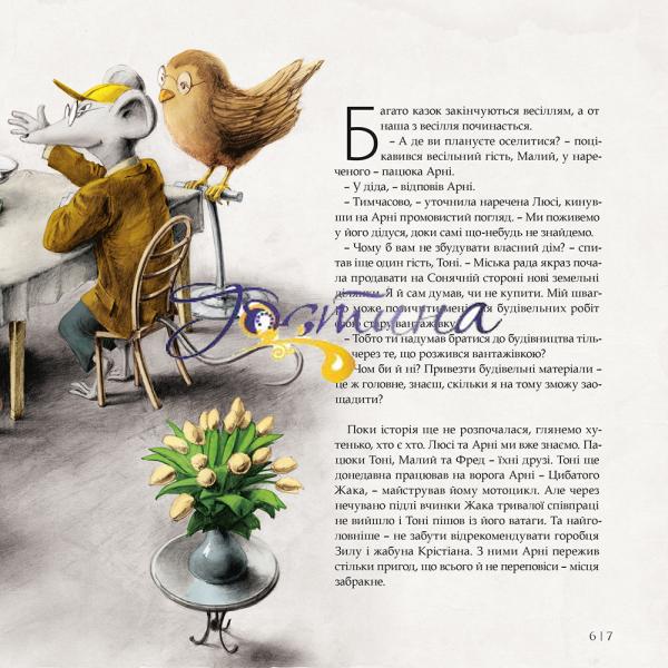 «Чи беруть іпотечний кредит птахи, коли збираються вити гніздо?» – питає пацючок Арні у свого давнього приятеля Зили. Безтурботна юність Арні минула – тепер він одружився і будує дім. Будівництво – справа нелегка: розробка проекту, оформлення будівельних дозволів, отримання іпотечного кредиту… Арні від усього цього вже голова йде обертом, але знав би він, який клопіт чекає на нього попереду! Справжня катастрофа! Сподіваймося однак, що все йому вдасться, адже в казках по-іншому й не буває!