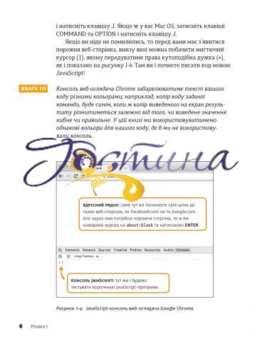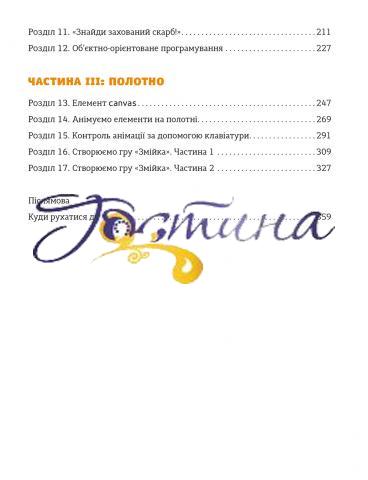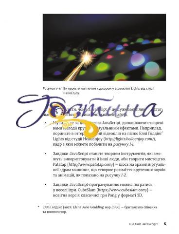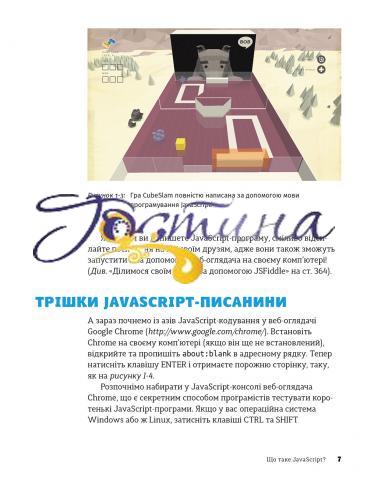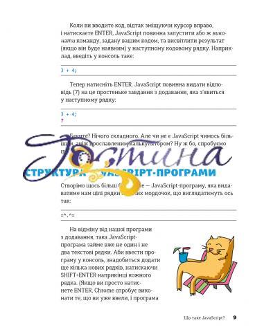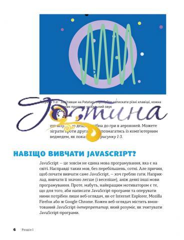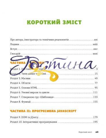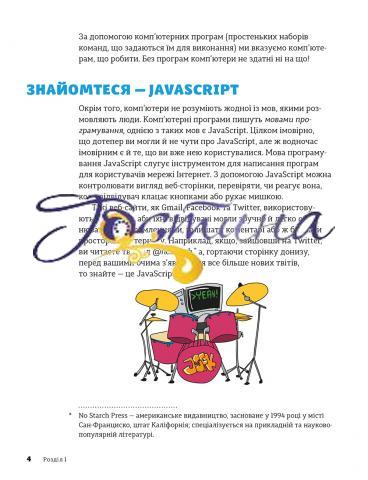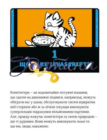 «JavaScript для дітей» — веселий посібник, вступ до основ програмування, із яким ви крок за кроком опануєте роботу з рядками, масивами та циклами, інструментами DOM та jQuery та елементом canvas для малювання графіки. Ви зможете писати та модифікувати HTML-елементи для створення динамічних веб-сторінок та напишете класні онлайн ігри «Знайди захований скарб», «Шибениця» та «Змійка». У цій книжці — безліч цікавих прикладів та кумедних ілюстрацій, а завдання з програмування наприкінці кожного розділу, надихнуть на створення власних приголомшливих програм. Утнімо щось крутецьке із JavaScript!