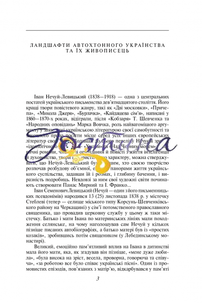 Іван Нечуй-Левицький (1838—1918) — видатний український письменник-реаліст, який написав понад п’ятдесят романів, повістей, оповідань, казок, п’єс з народного життя. Майстер слова мав на меті якомога глибше розробити «непочаті рудники» українського життя і створити правдиві образи людей з усіх верств суспільства. Колоритні постаті героїв, соковитий гумор та сміливе поєднання трагічного з комічним зробили твори Нечуя-Левицького справжніми перлинами української прози.