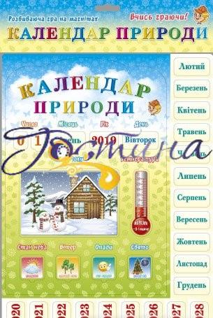 Комплект містить: картки з позначенням року, картки з назвами місяців, картки з позначенням числа, картки погоди і температури, картки з позначенням основних свят.