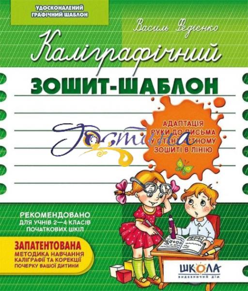 Загальновідомим є той факт, що процес опанування навичок письма, особливо на першому етапі, — нелегка праця для дитини шести-семи років. Надзвичайно важливим моментом стає вибір додаткового посібника для вироблення початкових графічних навичок, що враховує вікові фізіологічні та психологічні особливості дітей молодшого шкільного віку. Ми пропонуємо графічний шаблон, що являє собою густу похилу сітку, кожна чарунка якої призначений для вписування в неї елемента цифри, букви або з'єднання єднання. Працюючи за таким шаблоном, дитина легше і швидше навчиться дотримуватися правильного нахилу в процесі листи, однакової висоти і ширини літер, відстані між буквами, словами і реченнями.