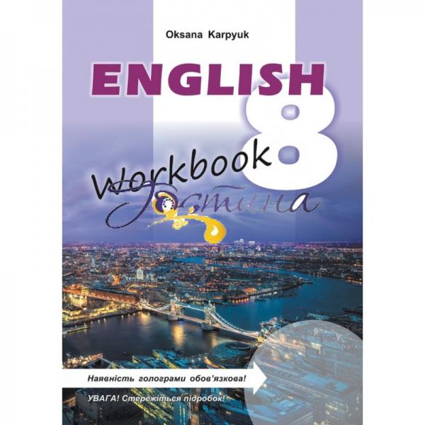 Робочий зошит до підручника "Англійська мова" для 8-го класу входить до складу НМК ‘English 8’, створеному на основі Концепції формування учнівської здатності до міжкультурного спілкування, яка послідовно втілюється у новій авторській серії НМК для основної школи, передбачає більшу соціокультурну спрямованість процесу навчання ІМ, в центрі якого знаходиться особистість учня та його потреби.Робочий зошит дозволяє розширити мовну і мовленнєву практику учня за допомогою додаткового інструмент