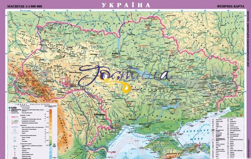 Карта Фізична України 1:1000 000