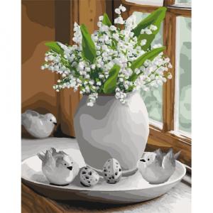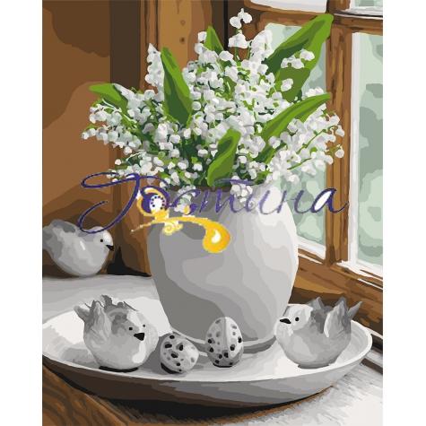 Картина за номерами - Конвалія на підвіконні для вашої творчості. Зроблено в Україні.