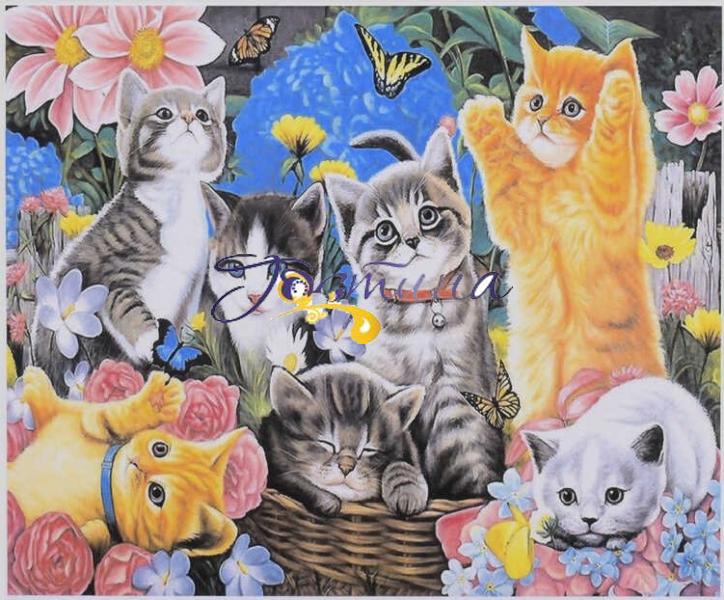 Картина за номерами + Алмазна мозаїка 2в1 "Кошенята", розмір 50х40см. YHDGJ75500