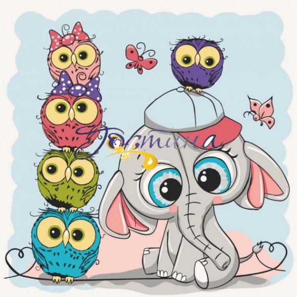 Картина за номерами ArtCraft Слоник з совами 30x30 см (15561-AC)