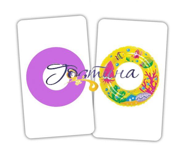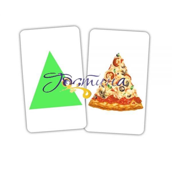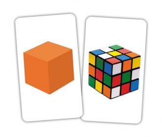 Набір містить 15 пар карток з яскравими фігурами і предметами тієї ж форми.