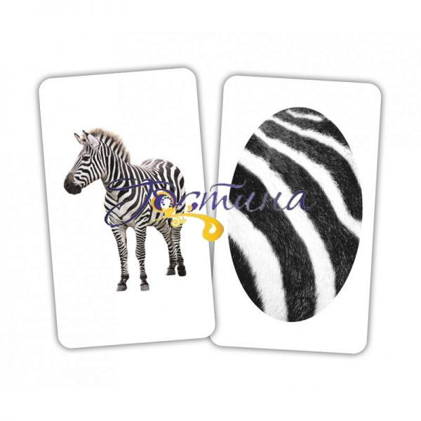 Набір «Тварина і фрагмент» – захоплююча навчальна гра для малюків від одного року. Ігри з картками розвивають інтелект, увагу, пам’ять, логіку, уяву і дрібну моторику.