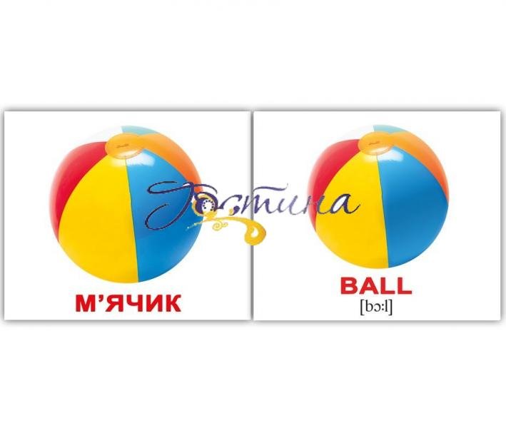Комплект вміщує 40 карток: 1. Top - Дзиґа2. Ball - М’ячик3. Doll - Лялька4. Sled - Санчата5. Train - Потяг6. Car - Машинка7. Drum - Барабан8. Blocks - Кубики9. Boat - Кораблик10.Plane - Літак11.Truck - Вантажівка12.Lacing - Шнурівка13.Dominoes - Доміно14.Dish set - Посуд15.Toy kitchen - Кухня16.Teddy bear - Ведмежа17.Toy piano - Піаніно18.Rattle - Брязкальце19.Tumbler - Іван-Покиван20.Pyramid - Пірамідка21.Phone - Телефон22.Wheel - Кермо23.Puzzle - Пазл24.Robot - Робот25.Rake - Граблі26.Paints - Фарби27.Guitar - Гітара28.Sorter - Сортер29.Spade - Лопатка30.Bucket - Відерце31.Scooter - Самокат32.Toy house - Будиночок33.Toy gun - Пістолет34.Laptop - Комп’ютер35.Tools - Інструменти36.Watering can - Лійка37.Helicopter - Вертоліт38.Toy soldier - Солдатик39.Roller skates - Ролики40.Construction set - Конструктор