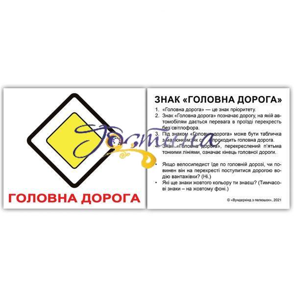 У наборі “Дорожні знаки” Ви знайдете 60 карток надрукованих на щільному та якісному картоні із зображеннями найважливіших знаків дорожнього руху. Усі картки двосторонні. На звороті картки розміщено багато інформації, яка буде цікавою і корисною як для малюка, так, іноді, для дорослих. Плюс загадки та завдання, над якими можна разом поміркувати. З такими картками кожне заняття буде грою, а шкірна гра – розвиваючим заняттям. Рекомендується для зайняти з дітьми як вдома, так і в поїздках, на прогулянці, в машині та багатьох інших місцях. Матеріал: якісний білий картон щільністю 300 г/м² Розмір карток: 10 х 8 см. Картки на русском Комплектація 1. Автомагістраль 2. Боковий вітер 3. В'їзд заборонено 4. Вибоїна 5. Виїзд на набережну 6. Викидання кам'яних матеріалів 7. Головна дорога 8. Готель чи мотель 9. Дати дорогу 10. Проїзд без зупинки заборонено 47. Пункт миття автомобілів 48. Пункт технічного обслуговування 49. Реверсивний рух 50. Ресторан або їдальня 51. Розворот заборонено 52. Рух заборонено 53. Рух ліворуч 54. Рух праворуч 55. Рух прямо 56. заборонено 58. Туалет 59. Тунель 60. Тупик Усі діти люблять вчитися, але, переважно, граючи. Насправді вони вважають, що навчання – це просто гра. З деякими витратами години та картками за методикою Глена Домана, Ви зможете навчити своїх дітей абсолютно всьому, що вважаєте за потрібне. Картки містять інформацію, що базується на знаннях. Тому кожен факт правильно і, головне, вчасно поданий дитині, буде не тільки сприяти розвитку дитини, а й сформує фундамент для всіх її майбутніх знань. Наукові дослідження показують, що маленькі діти навчаються з дивовижною швидкістю. Картки ідеально підходять для дитячої стимуляції, цікаві для більшості дітей. Тому й стають для них захоплюючою грою.