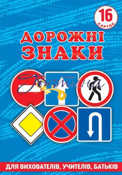 Картки 'Дорожні знаки' Для ознайомлення дітей з дорожніми знаками. Картки з картону: на одному боці зображено знак, на іншому — матеріал для занять і ігор. Код товару: 1070 Вік дитини: 4-10 Розмір упаковки: 17х29 В комплекті: 16 розрізних карток (32 знаки)