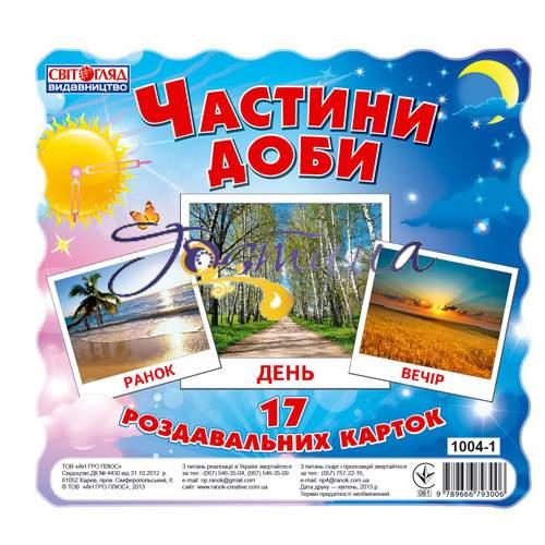 17 роздавальних карток на задану тему. У наборі 17 карток за темою годину доби. Використання карток дозволить учням швидко вичити назви доби.