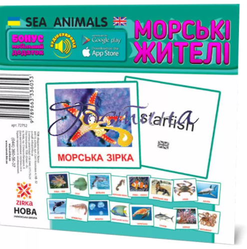 Скачай додаток, встанови його на свій пристрій, відкрий програму та введи код, який зазначено на обороті обкладинки (в кожному комплекті свій унікальний код). Ти почуєш, як вимовляються слова - назви зображених на картках об'єктів українською та англійською мовами.