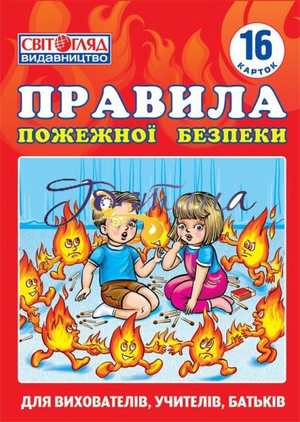 Картки 'Правила пожежної безпеки' Кожна картка з набору містить цікаву сюжетну ілюстрацію із віршиком. Це дозволяє вихователям і батькам з легкістю зацікавити малюків у вивченні потрібних правил безпеки, перетворити нудне заучування у гру. Код товару: 1065 Вік дитини: 4-12 Розмір упаковки: 17х24 см В комплекті: - 16 карток