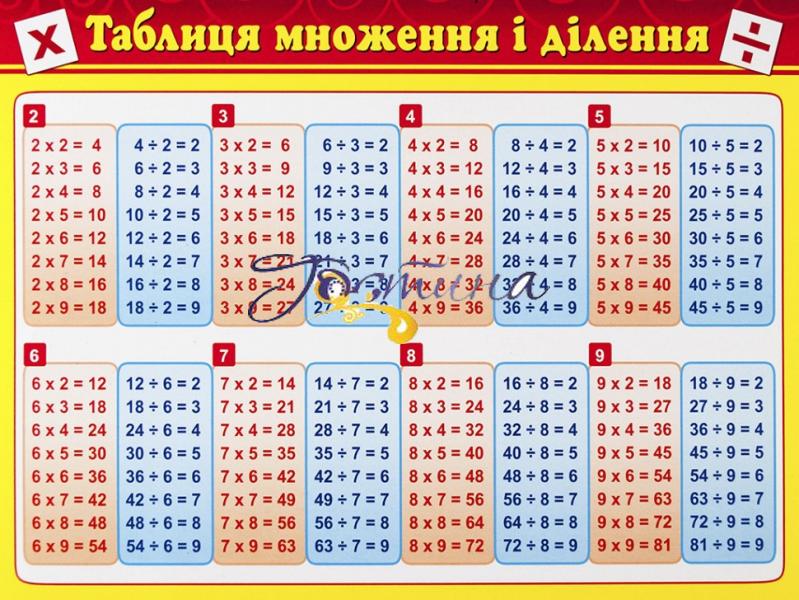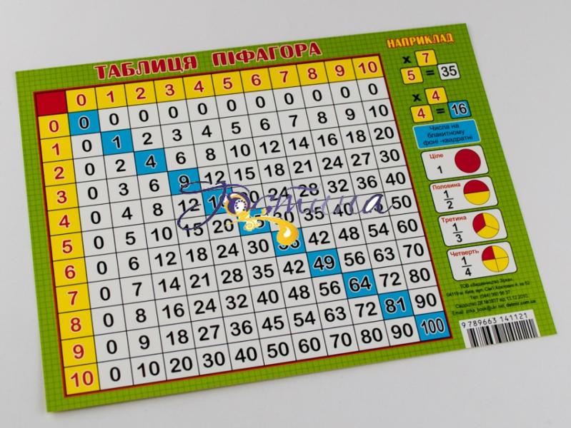 Картонка-підказка містить: таблицю множення та ділення, таблицю Піфагора. Вона стане незамінним помічником для учнів початкової (а не рідко й середньої) ланки освіти під час уроків у школі та вдома.
