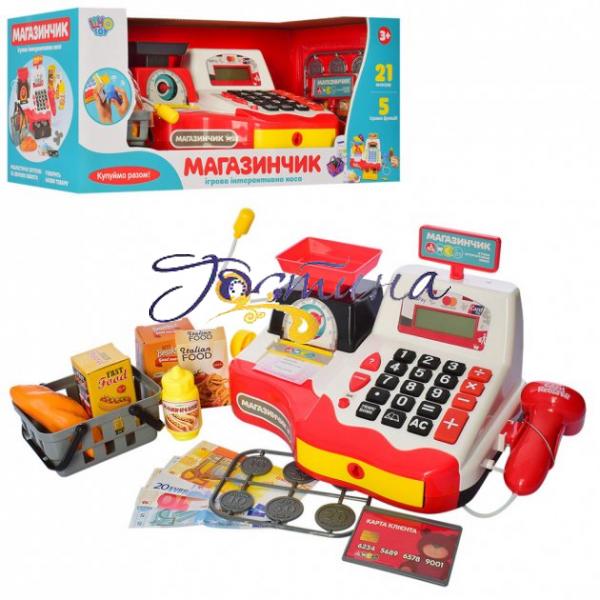Завдяки касовому апарату 7162-1 UA малюк зможе випробувати себе і в ролі покупця, і в ролі продавця. Касовий апарат 7162-1 UA надасть йому чудову нагоду пройти весь процес здійснення покупки, а до того ж навчитися основам рахунку. Виглядає ігровий набір касовий апарат дуже реалістичний. Він оснащений калькулятором і мікрофоном. Яскраві кольори та симпатичний дизайн обов'язково сподобаються дитині. Ця іграшка однаково підійде і хлопчикам, і дівчаткам.