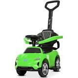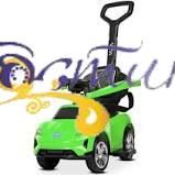 Каталка - толокар Bambi M4290-5, салатова оснащена широким сидінням із пластику. Каталка має музичні ефекти, які працюють від батарейок типу АА. Машинка оснащена колесами з пластика і високою спинкою на сидінні.