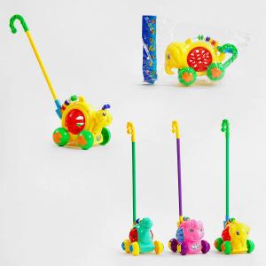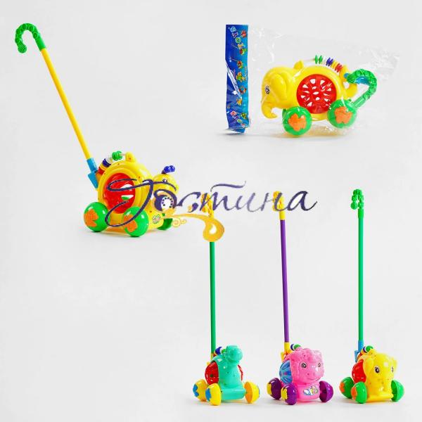Симпатична яскрава каталка 0330-0333 на довгій ручці стане чудовим подарунком для малюків, які ще вчаться чи тільки навчилися ходити.
