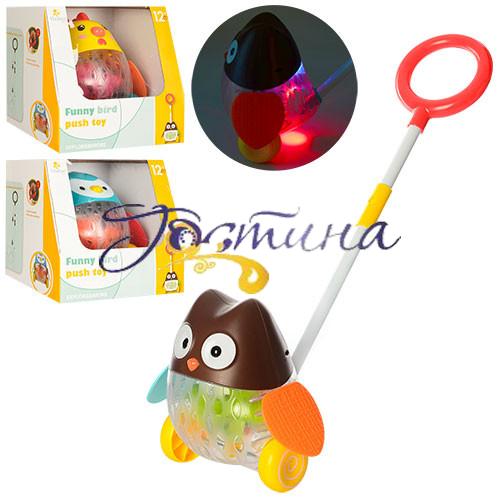 Іграшка-каталка, виконана в яскравому дизайні, допоможе дитині зробити перші кроки. Штурхаючи іграшку вперед за допомогою ручки-тримача, малюк побачить як крила рухаються, усередині іграшки весело торохтять кульки і вона світиться. Каталка допоможе розвивати координацію рухів та рухові функції малюка. Характеристики іграшки-каталки: Іграшка виконана у вигляді барвисті пташки з рухомими крилами Каталка обладнана зручною ручкою. Іграшка наповнена кольоровими намистинками. Гра супроводжується світловими ефектами.