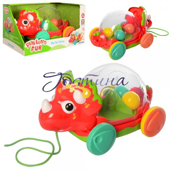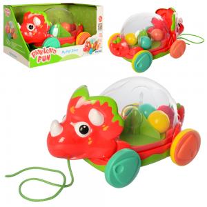Каталка 31546 динозавр 25 см, на мотузці, кульки, рухомі деталі, в коробці. Розмір - 27,5-15-16см, Матеріал - пластмаса, Тип упаковки - Window Box.
