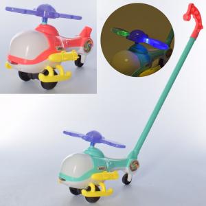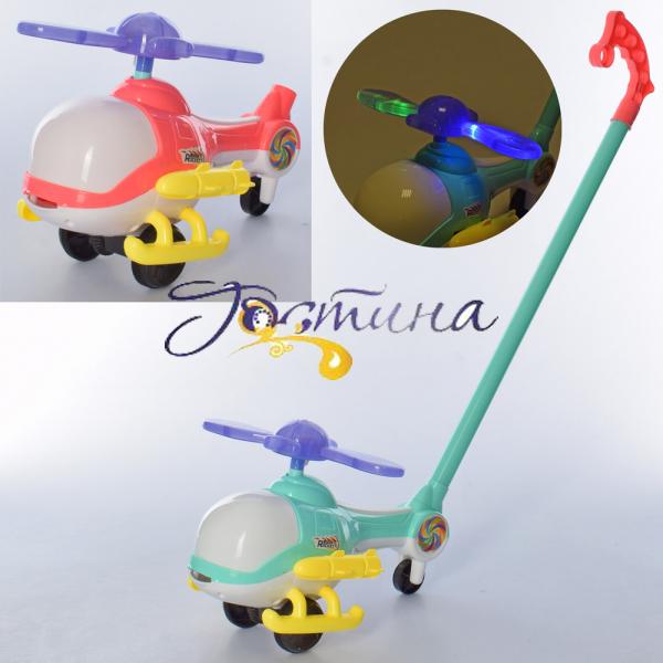 Каталка 8581B на палиці, вертоліт 25см, вращ.пропелер, муз-механич, світло, рухливі деталі, 2 кольора, бат-таб, в кульку. Розмір - 25-14-14см