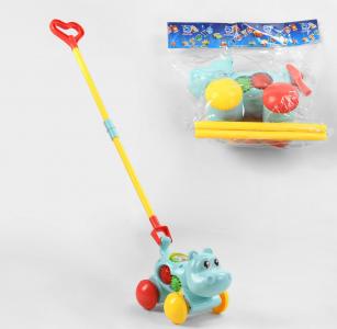 Каталка на палиці у формі блакитного бегемотика A 0506 – це чудова повсякденна іграшка, яка обов'язково стане вірним супутником у всіх прогулянках у дворі, на природі та у місті. Каталка обладнана знімною палицею, що складається з 4-х розбірних елементів: 2 палиці, кріплення та ручка. Сама палиця вставляється в спеціальне знімне кріплення, що має кут нахилу на 140°. Така конструкція дозволить малюкові самостійно вибирати висоту палиці, це допоможе правильно вибудувати темп та ритм ходьби, а також дозволить комфортно утримувати рівновагу та оминати перешкоди. Бегемотик виконаний у ніжно-блакитному кольорі та обладнаний на спині та з боків сполученими шестеренками, вони крутяться під час руху іграшки. Коліщата пофарбовані в 2 кольори: червоний і жовтий, а також заднє колеса оснащені пищалками. Особливості моделі: - пищалка; - Шестерні. Висота палиці від підлоги – від 72 см до підлоги.