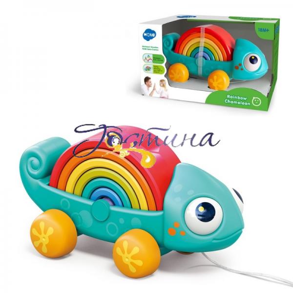 Каталка ha795700 хамелеон, пірамідка-конструктор, на шнурку, кор., 29-13,5-13,5 см.