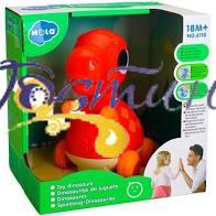 Яскрава іграшка у вигляді забавного динозавра. Якщо доторкнутися ззаду, динозавр поїде і заграє музика. Також можна возити іграшку як каталку. Є мелодії і звукові ефекти, без слів. Іграшка відповідає стандартам якості і безпеки.Удвох кольорах