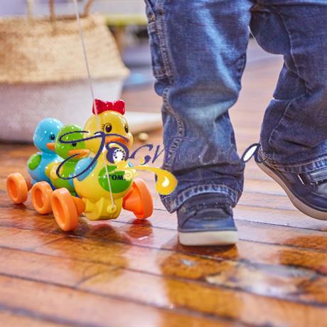 Спостерігайте, як милі каченята покочуються і крякають, доки дитина тягне їх за мотузку по дому. Каталка дає уявлення про причинно-наслідковий зв'язок та заохочує малюків ходити. Ця іграшка для малюків сприяє розвитку координації руки-очі та рівноваги тіла.