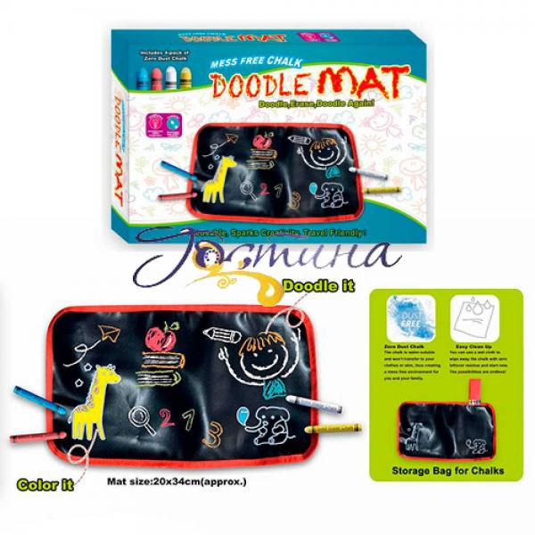 Килимок 3821 для малювання, 34-20см, крейда 4шт, в коробці. Розмір - 30-20-4см, Матеріал - пластмаса + тканина, Тип упаковки - коробка.