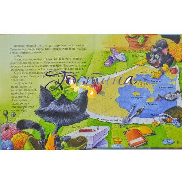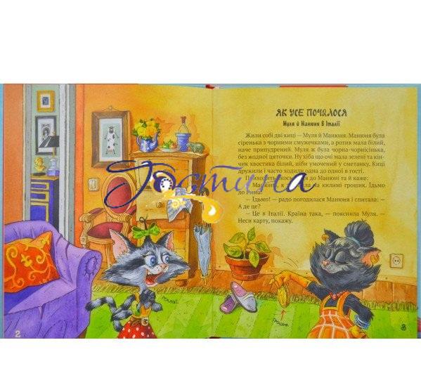 По сторінках веселої книги разом із двома розумними кицями читачі цього разу відправляться у мандрівку Італією, Гренландією та Фінляндією. Знання та враження про унікальність цих країн легко та невимушено стануть надбанням юних особистостей. Динамічний сюжет, невеликий обсяг історій, гумор, гра слів, колоритні характери головних героїнь, цікаві знайомства, кумедні кольорові малюнки – все це сприяє легкому читанню.