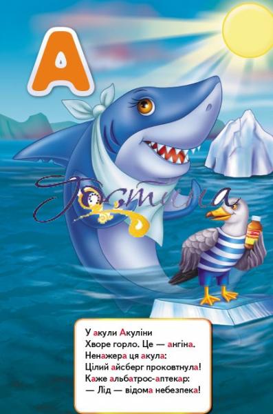 - Великоформатні, повнокольорові, добрі й веселі ілюстрації, що відповідають кожній літері;