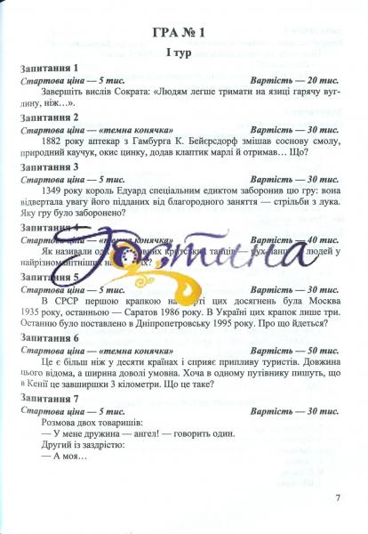 Пропонований посібник являє собою черговий випуск серії «Українські інтелектуальні ігри» і містить розробку правил інтелектуальної гри, а також добірку завдань і запитань різноманітної тематики для її проведення.