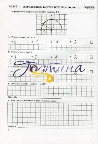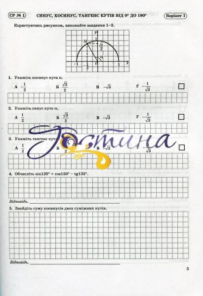 Матеріали посібника відповідають чинній програмі з математики для 9 класу загальноосвітніх навчальних закладів. Посібник містить 14 самостійних і 7 контрольних робіт, кожному з яких подано у двох варіантах однакової складності.
