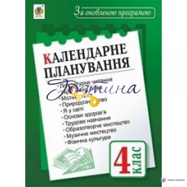 У посібнику подано орієнтовне календарне планування з української мови, літературного читання, математики, інформатики, природознавства, предмета Я у світі, основ здоров’я, образотворчого та музичного мистецтва, трудового навчання, фізичної культури. Планування відповідає оновленій навчальній програмі, затвердженій МОН України, та чинним підручникам для 4-го класу. Для вчителів початкових класів. Подробнее: https://lavkababuin.com/kniga-kalendarne-planuvannya-4-klas-743759/
