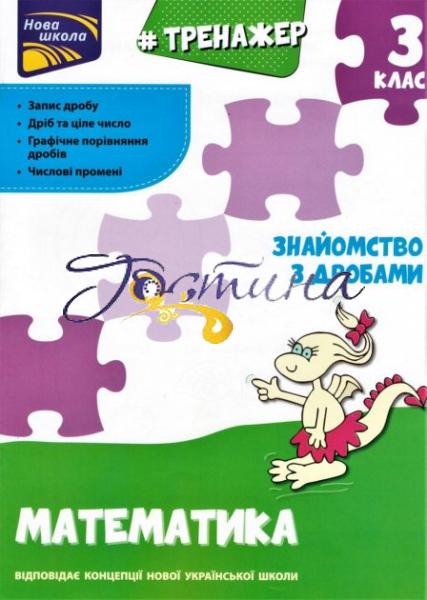 Як дитині зрозуміти, що таке частина цілого, навчитись відображати її у графічному вигляді, познайомитися з поняттям дробу? Легко та зрозуміло це пояснить тренажер «Знайомство з дробами»! Завдання тренажера допоможуть дитині зробити важливий крок до практичного застосування отриманих знань та стануть цікавою розумовою гімнастикою для подальшого розвитку математичного мислення. Тренажер призначений для автоматизації математичних навичок дитини. Його можна використовувати для роботи як на уроках, так і вдома. Завдання відповідають чинній програмі Нової української школи.