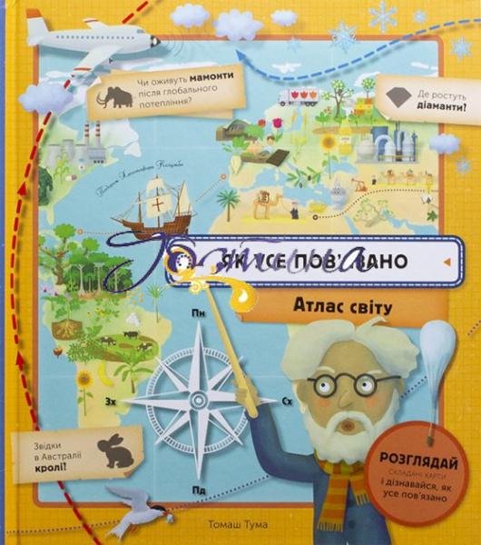 Гортаючи цей атлас дитина довідається, як несподівано впливають одне на одного явища та країни, що лежать на відстані в тисячі кілометрів. Атлас містить чотири основні розділи, які мають вигляд детально проілюстрованих складаних карт, які пояснюють зв’язок між природою й життям людей на різних континентах. Додаткові вкладки повідомляють цікаві факти з історії. У цьому атласі на читача чекають: великі складані карти, що пояснюють, як пов’язано ве у світі, понад 200 прикольних ілюстрацій, вкладки з цікавими фактами,дикі та приручені тварини, рослини, тропічні ліси та їхній вплив на погоду.