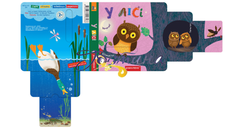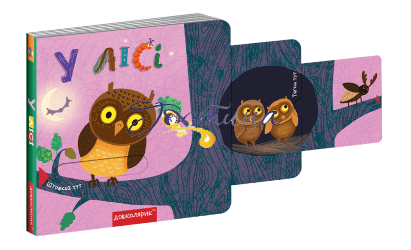 Видання ознайомить малят з різними лісовими тваринами. У розвивальній книжці-грі «У лісі», яка містить рухомі елементи для занять із дітлахами 2+, на кожній сторінці є подвійний висувний елемент з барвистими ілюстраціями, які доповнюють коротенькі віршики Сергія Цушка та Василя Федієнка про лісових тварин. Такі видання захоплять будь-якого малюка, адже в них — веселі малюнки, чудові вірші-загадки, а головне — кожна сторінка має свій секрет-відгадку. Інтерактивні елементи сприятимуть розвитку дрібної моторики, пам’яті та уваги дошкільнят.