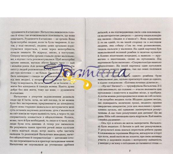 «Усе могло би скластися інакше, якби в мене був тато. Мама тоді могла б із ним порадитися. Порадилася б — і не віддала мене вчитися до Тетяни Володимирівни. Тетяна Володимирівна не сказала б: «Встати! Руки за голову!» Дідуся б це не нажахало, і він не наполіг би на тому, щоб перевести мене в іншу школу. І я не потрапила б у клас до Марсем. Це Марсем розповіла нам про янголів — про те, що вони повинні відпочивати. Відтоді минуло багато років. Але коли зі мною щось трапляється — погане чи добре, — я про це згадую…»