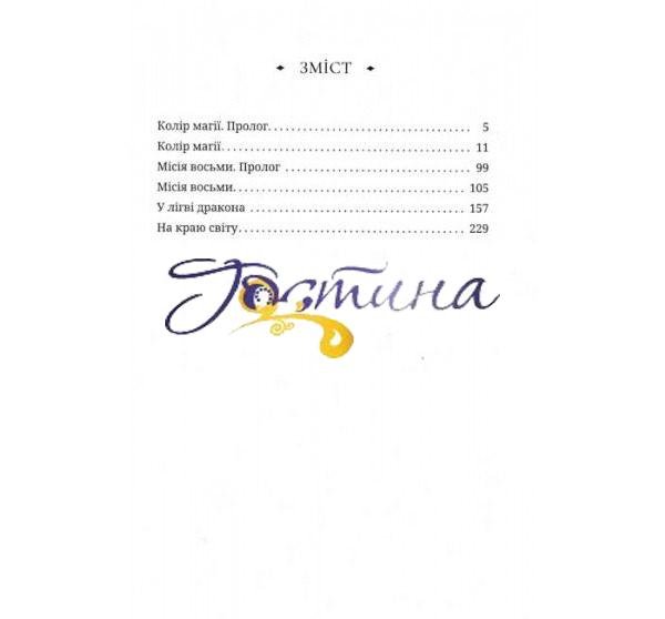 «Колір магії» — перший роман із серії «Дискосвіт» майстра інтелектуального фентезі Террі Пратчетта. Написаний у 1980-х роках, роман пародіює штампи тогочасної фантастики і дотепними натяками, грою слів та жартами закладає основи неповторного Пратчеттового стилю, який у пізніших творах проявить себе витонченою гострою сатирою. Роман відкриває один із циклів серії — «Ринсвінд» та є своєрідним ключем-підказкою до багатьох явищ Дискосвіту. Маршрут туриста Двоцвіта і його гіда Ринсвінда, чарівника-невдахи, малює своєрідну карту розмаїтого неозорого світу, з міфічними істотами, дивовижними рослинами, таємничими чарами й особливою магією. Якого ж кольору ця магія, чи справді світ плаский, чи можна змінити свою долю і втекти від Смерті, якщо ти всього-на-всього фігурка у настільній грі, і ставки вже зроблено?